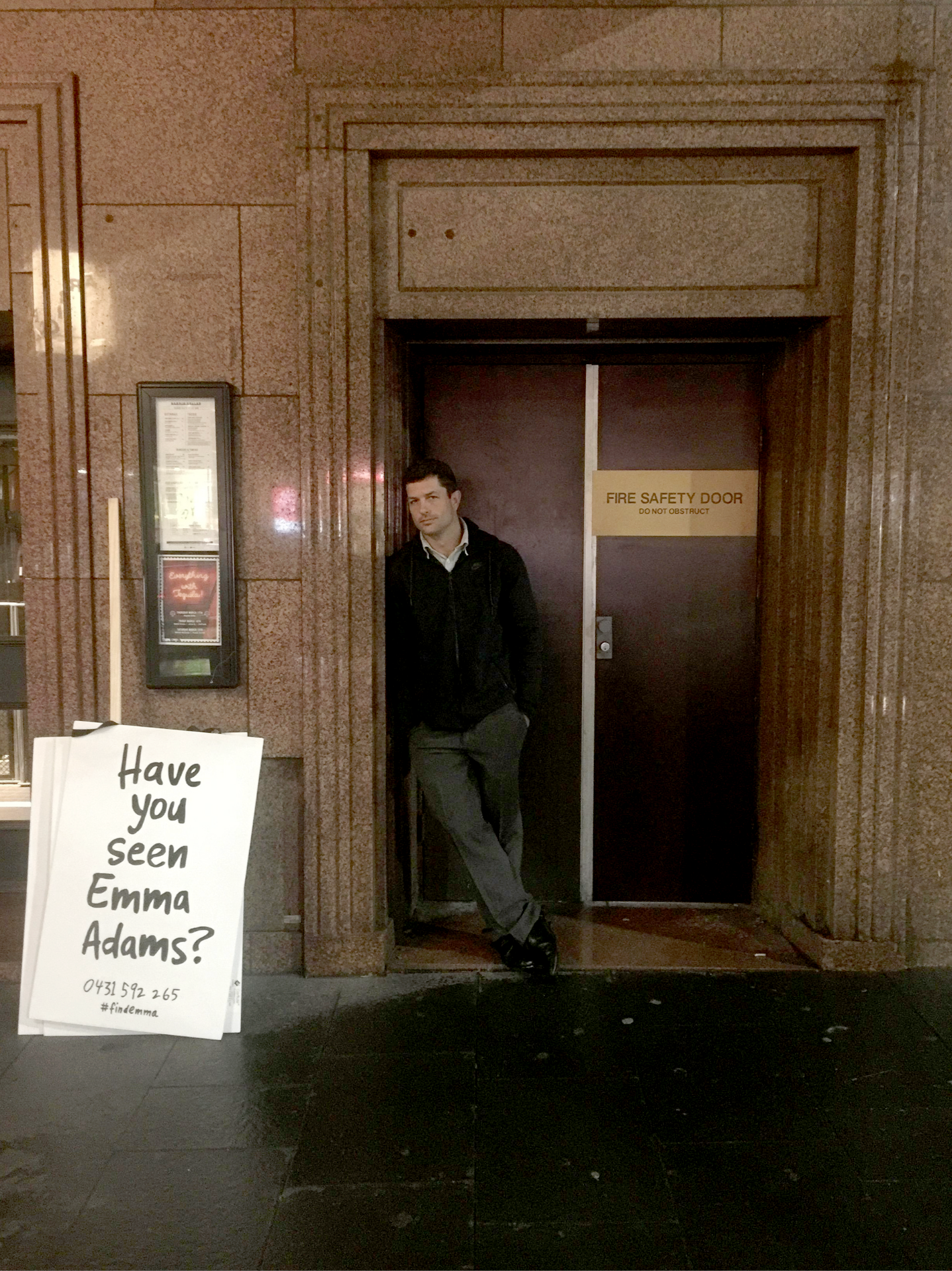 PA announcements (in airports, beaches, supermarkets, sports events) Radio announcements, Telegraph pole posters, Homemade banners at sporting events, Loud hailer, Signage outside the window of the Sunrise morning TV show, haveyouseenemmaadams.com, Facebook posts/shares, Flyers, Street posters, Talk back radio, Facebook group ‘Have you seen Emma?’, A hashtag #findemma, Have you seen Emma hotline with voicemail message for any leads from the public, An Instagram account,